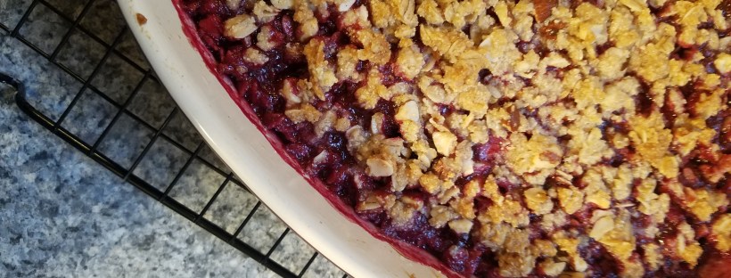 This crisp was inspired by Linzer Torte, but is MUCH less labor intensive, and has a lighter more summery feel.